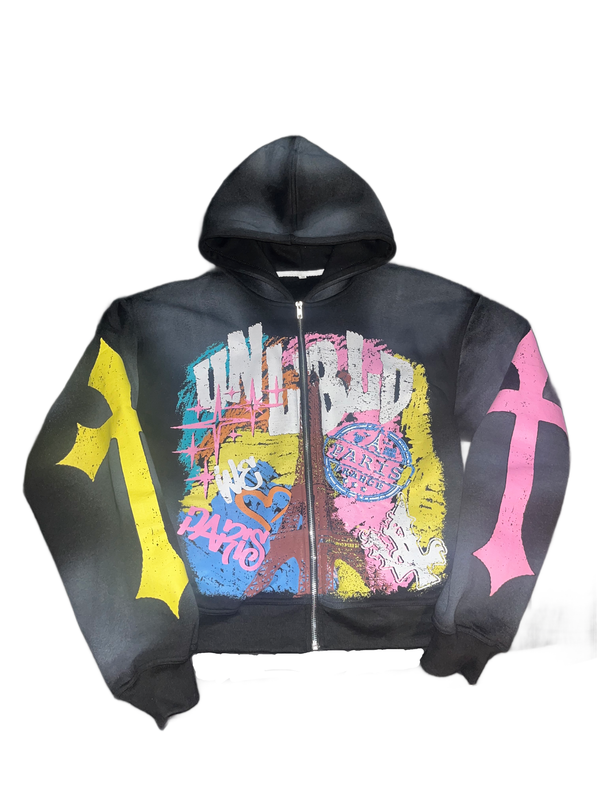 Black "We Love Paris" Zip Up Jacket